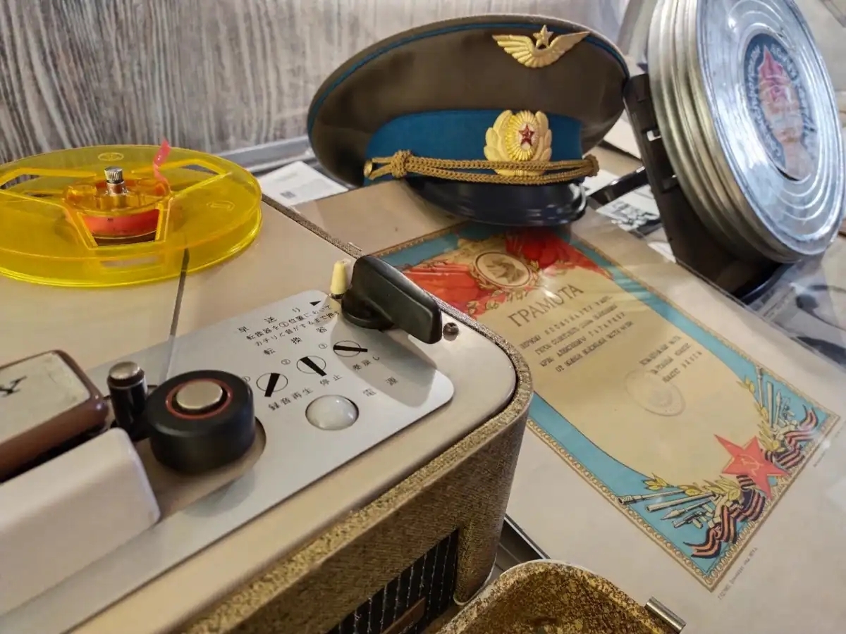 Среди уникальных экспонатов — магнитофон и грамота Юрия Гагарина, лунная кинокамера, личные дела космонавтов, много книг, газет, журналов и другие ценные предметы из коллекции Киномузея, которых больше нет нигде.